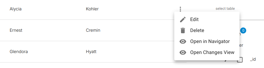 - Open in Navigator – Opens record in the Data Navigator
