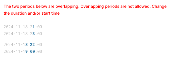 Minyu enforces strict rules to prevent overlapping slots from being produced by a single sequence. If a configuration would result in overlapping occurrences, the system highlights the conflict and prevents the sequence from being saved until the issue is resolved.