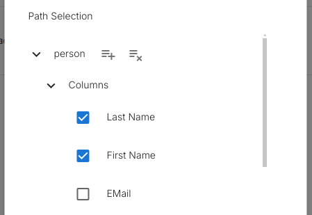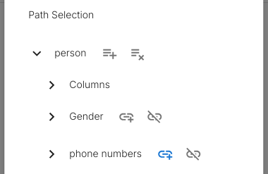 The Path Selection field defines which mutations are monitored on the source table and across its relations.