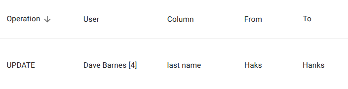 | Column | The specific column that was modified |