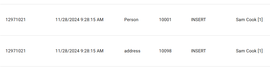 | Transaction | Database transaction ID that groups all related changes |